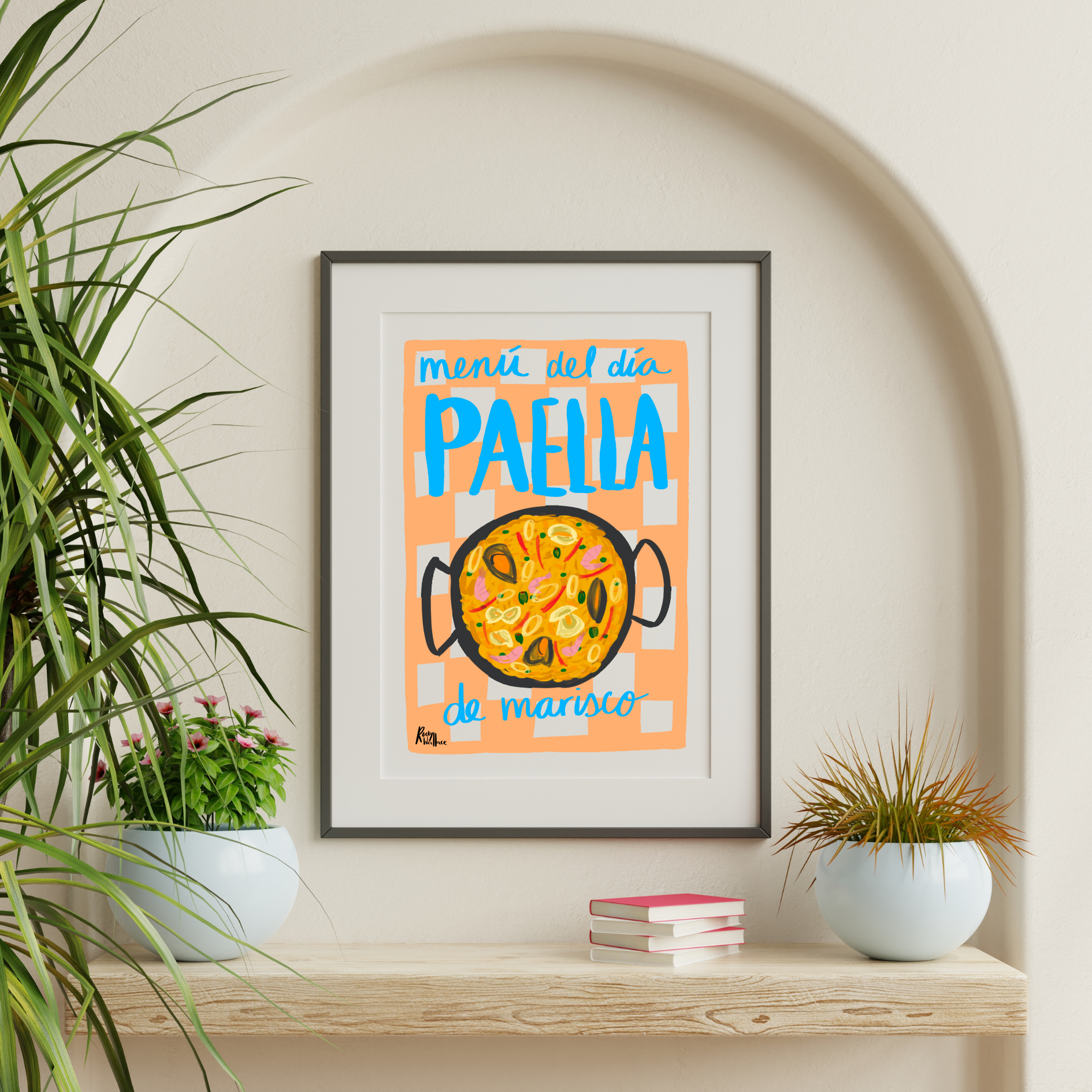 Menú del Día – Paella de Marisco - Rustic Spanish Kitchen Wall Art Print A4/A3 Print - Spanish Food - Unframed